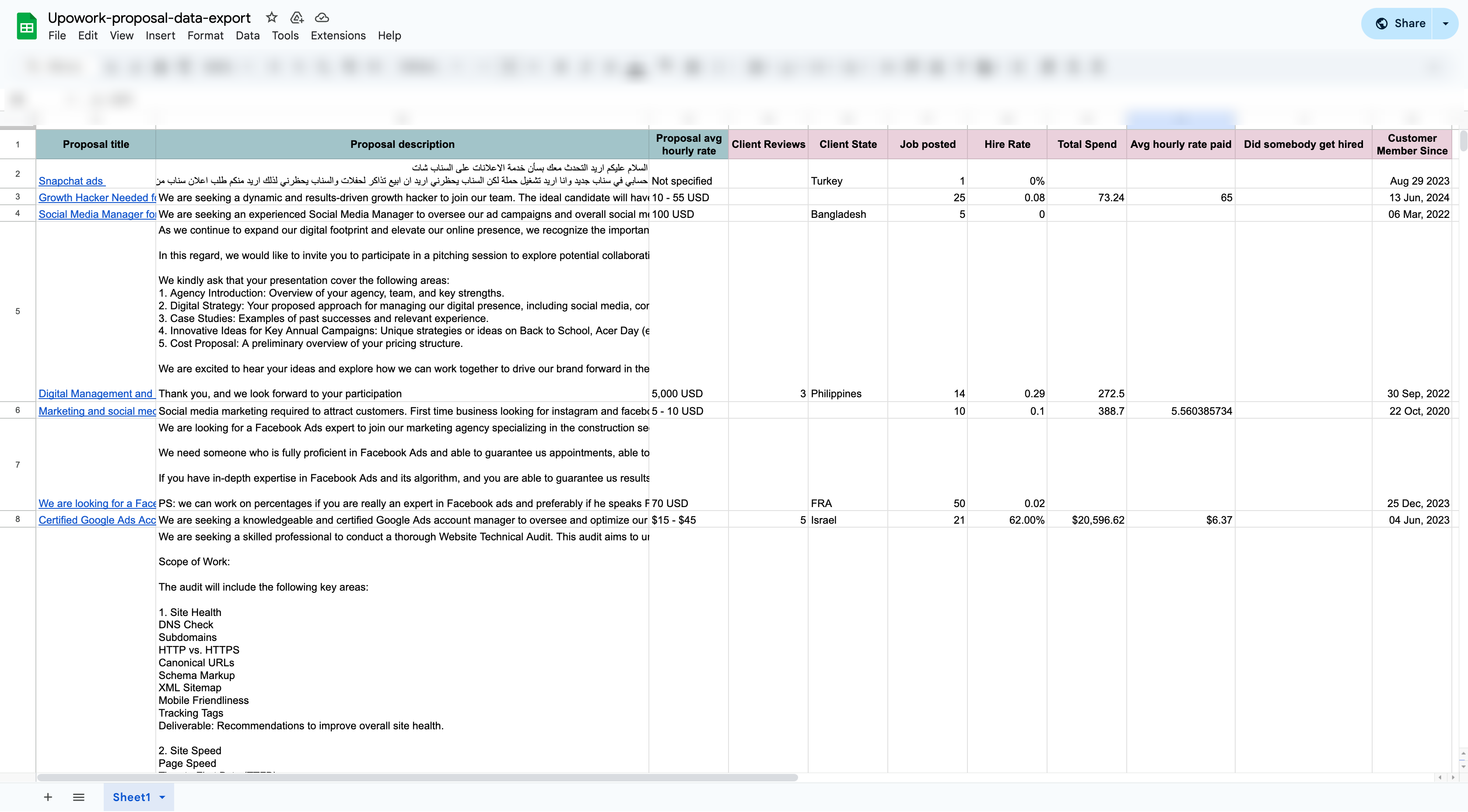 The layout, columns, and fields in your Google Sheet can be fully customized based on your specific needs. You can choose which job data to display and how to organize it - whether you want a simple view with just the basics or a detailed spreadsheet with all available information.